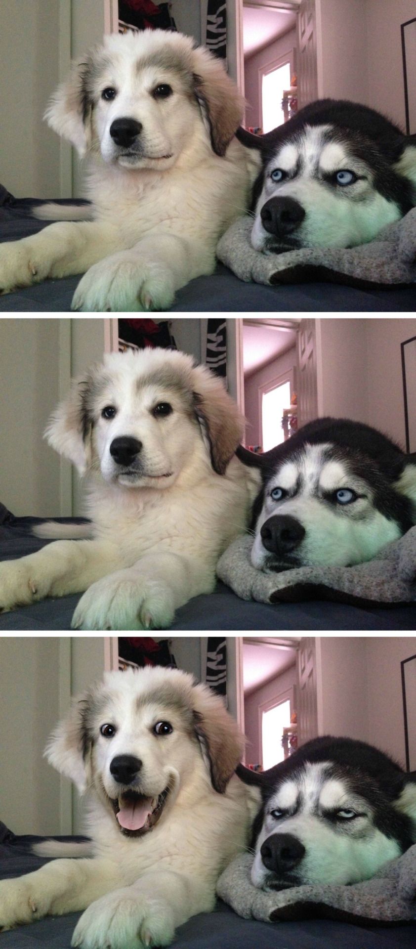 The "Bad Pun Dog" meme features a husky, often accompanied by a plush toy. Originating as an image macro series, it depicts the dog delivering intentionally cheesy or groan-worthy puns, often referred to as "dad jokes." The meme typically uses a multi-panel format: the first panel shows the dog in a contemplative or innocent pose, while subsequent panels reveal the dog with a wide, proud grin, signaling the punchline of a "bad pun." Its meaning revolves around the relatable humor of sharing silly jokes that elicit exasperated reactions, yet bring immense joy to the pun-teller. It's used to represent moments of playful, cringe-worthy humor.
